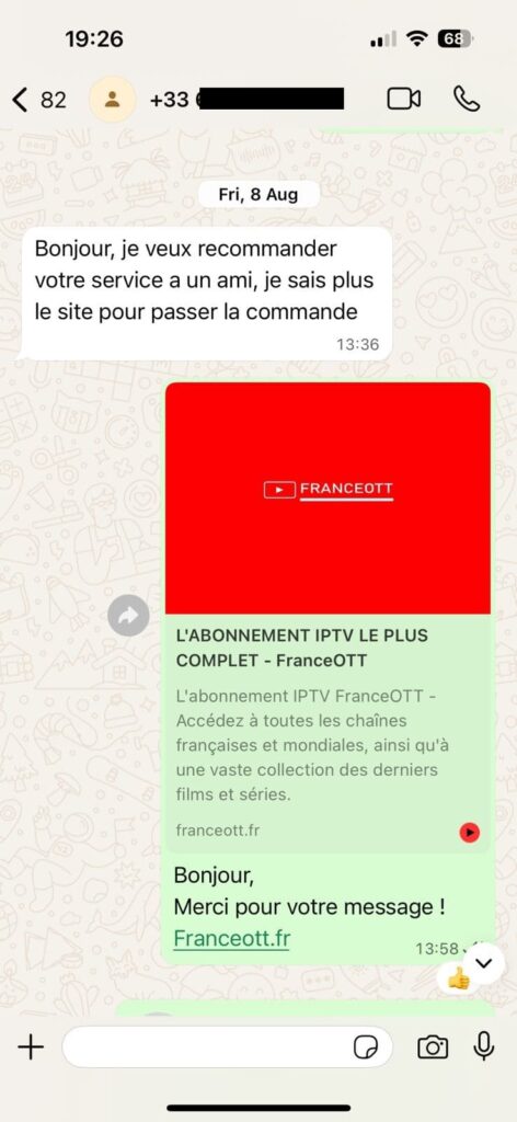 Depuis 2016, FranceOTT offre un forfait IPTV complet et exclusif qui réunit toutes les chaînes françaises et internationales, y compris DAZN, Bein Sports, RMC Sports, Amazon Prime, Canal+ et bien d'autres. De plus, cet abonnement inclut une vaste collection des derniers films et séries , y compris des films et séries de Netflix, Prime Video, Disney+, Apple TV, HBO, Canal+ et bien d'autres encore.