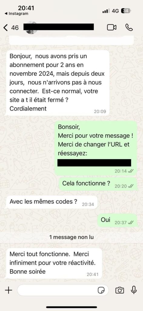 Non, après l'expiration de votre abonnement, il vous faut soit nous contacter via Whatsapp, soit effectuer un nouvel achat sur notre site web pour renouveler votre abonnement.